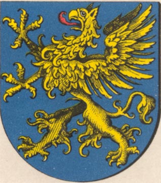 | Wappenbeschreibung nach Hupp | Stadt, 4527 Einwohner (1925) Wappen: In Blau ein schreitender goldener Greif. Das aus dem 13. Jahrhundert stammende prächtige SIGILLVM CIVITATIS RIBENIS und ebenso ein weiteres Sigillum aus dem 14. Jahrhundert zeigen den gekrönten Stierkopf, jederseits begleitet von einem aufsteigenden zugewendeten Fisch (ryba = Fisch). Das 1371 urkundliche SECRET BVRGENCIV I RIBBENITZ zeigt aber einen Greif und dieser blieb bis heute das Stadtwappen. |
